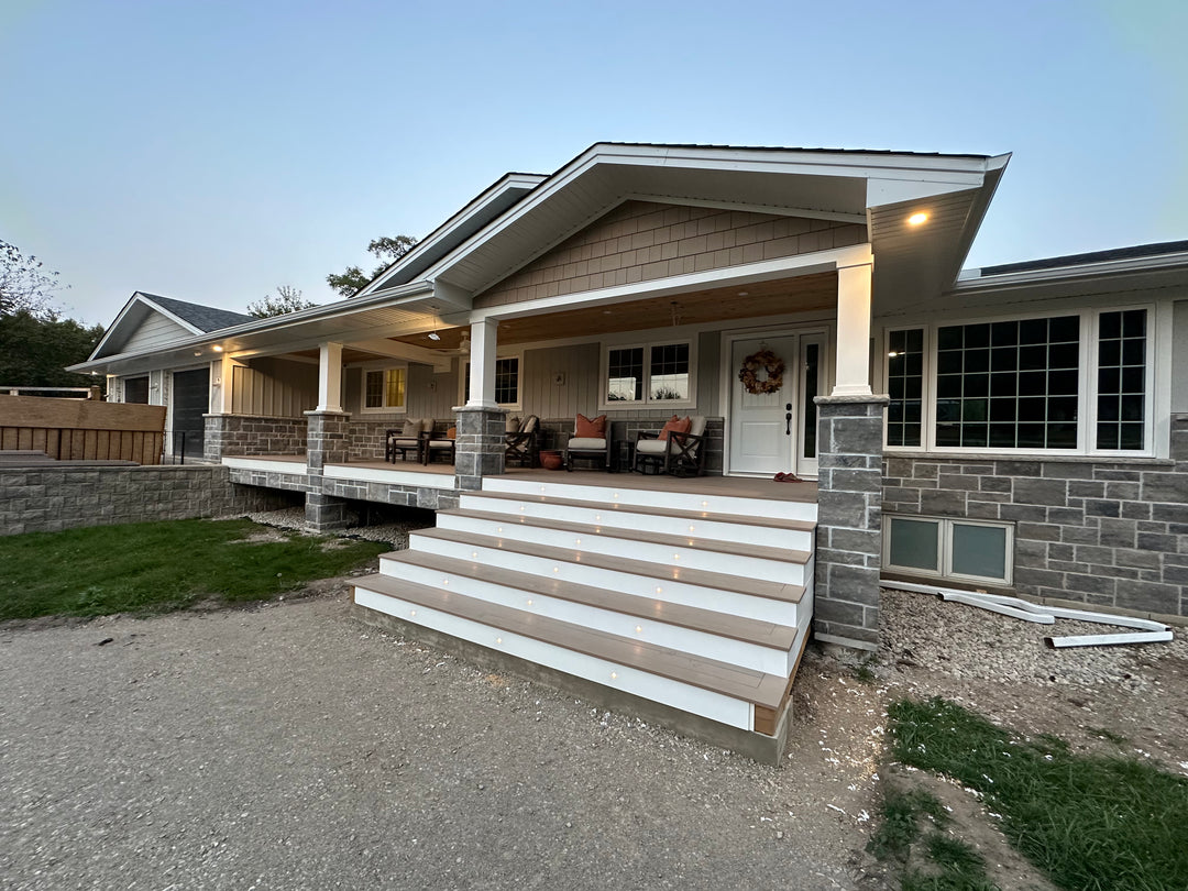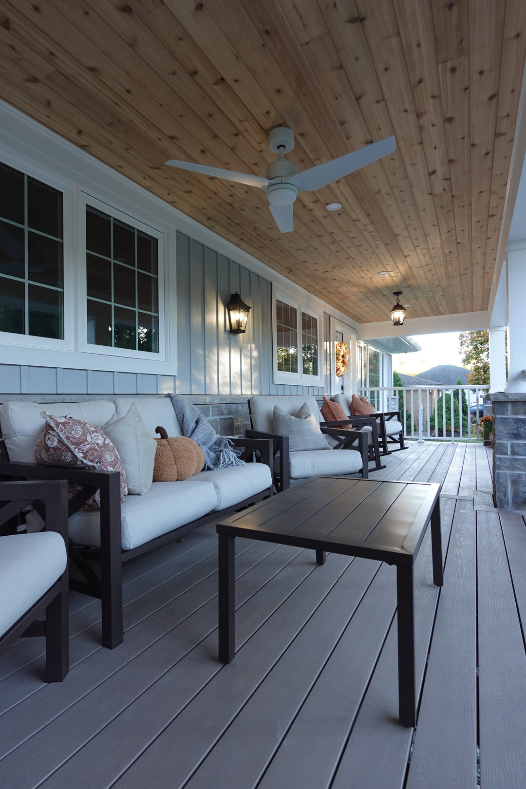 After four months of renovating, we could finally see our vision taking form. One of our favorite additions was the composite decking, which truly brought the porch to life!