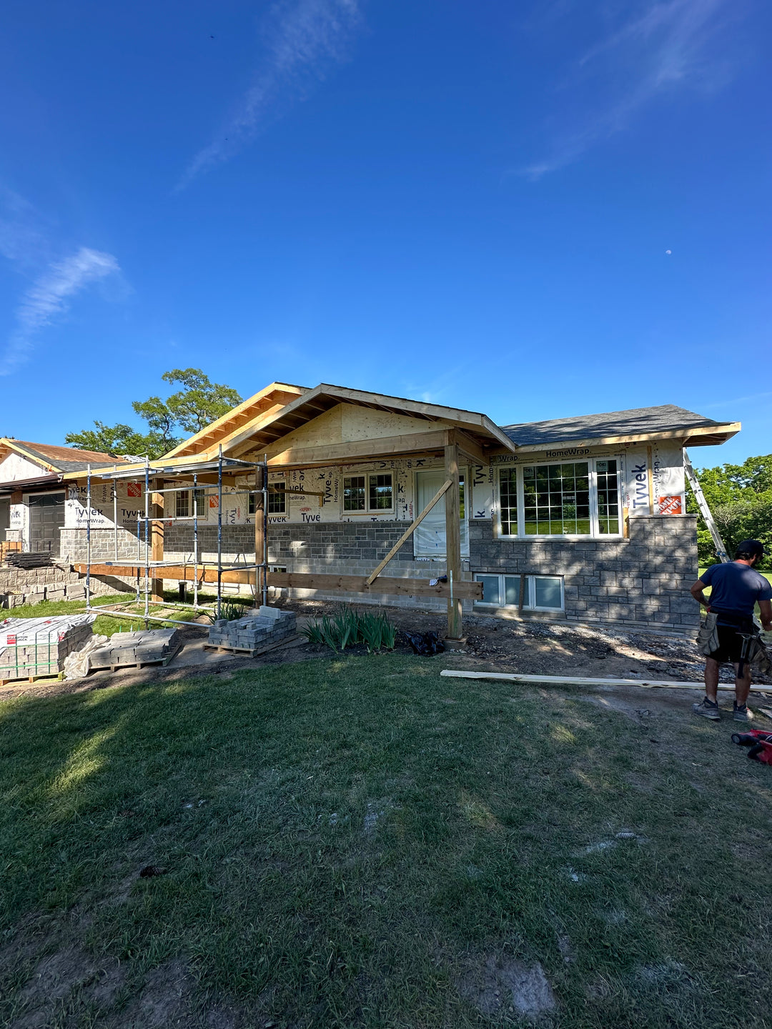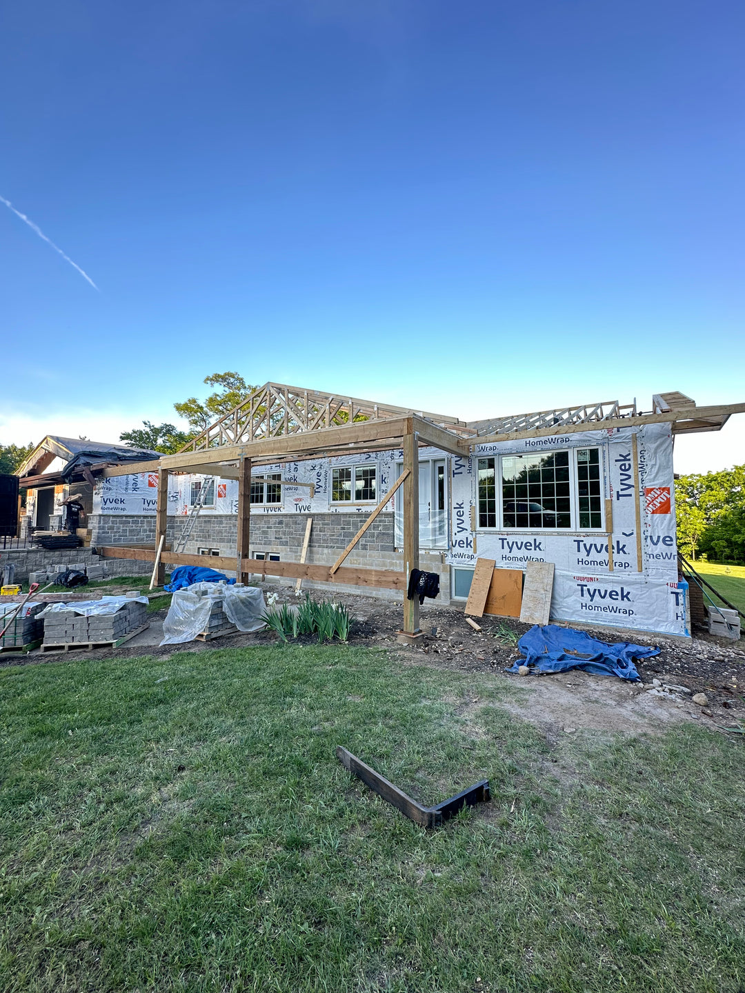 I bet you've never seen a 'naked' house before—I know I hadn't! Judging by the reaction on social media when we started this renovation, a lot of people were also surprised to see a house stripped of its brick facade. But that's exactly what the brick was—a facade, not a structural element. Besides not loving the size or style of the brick, removing it gave us access to the framing, which was essential for installing the bearing points for our new front porch.