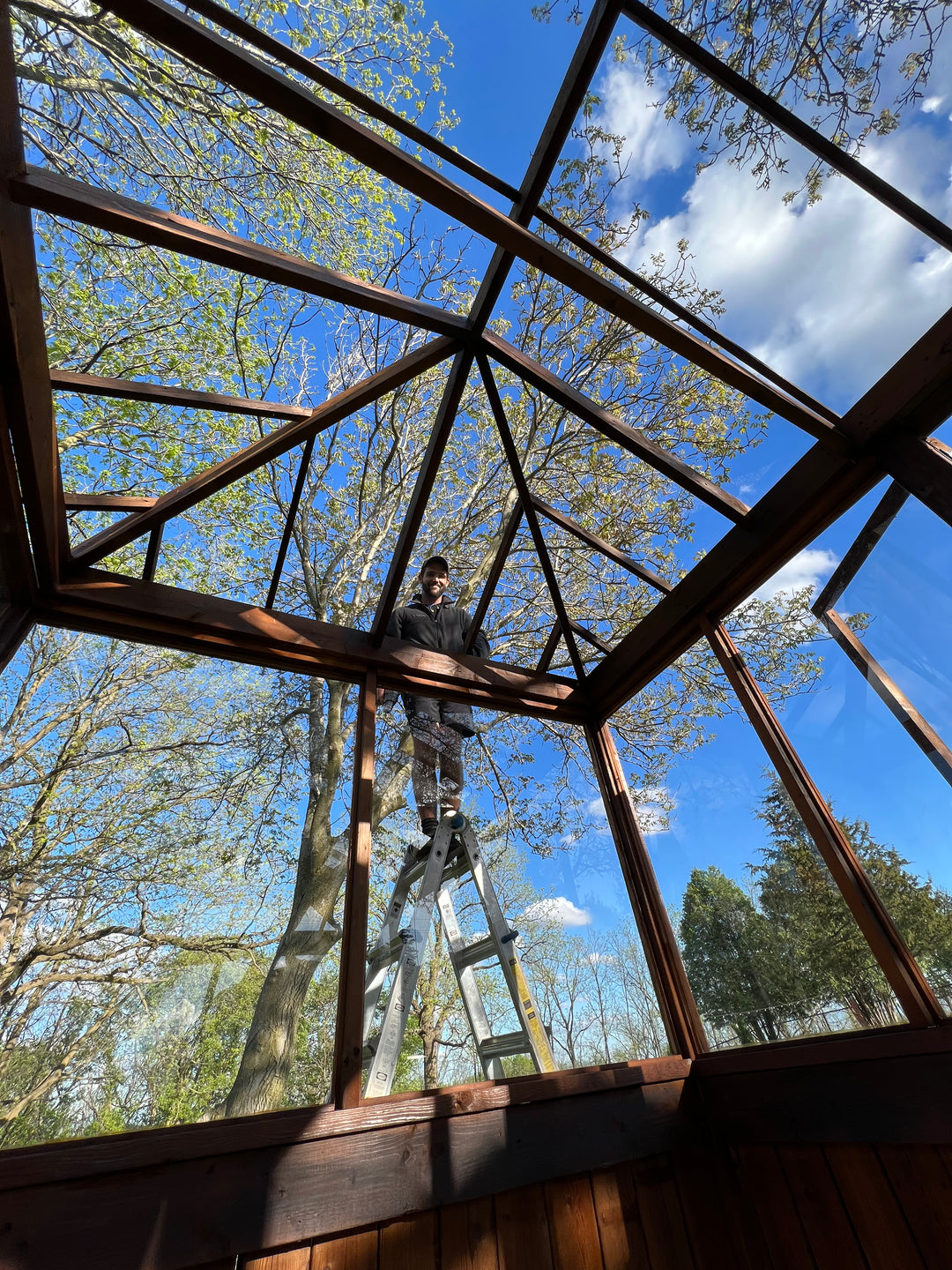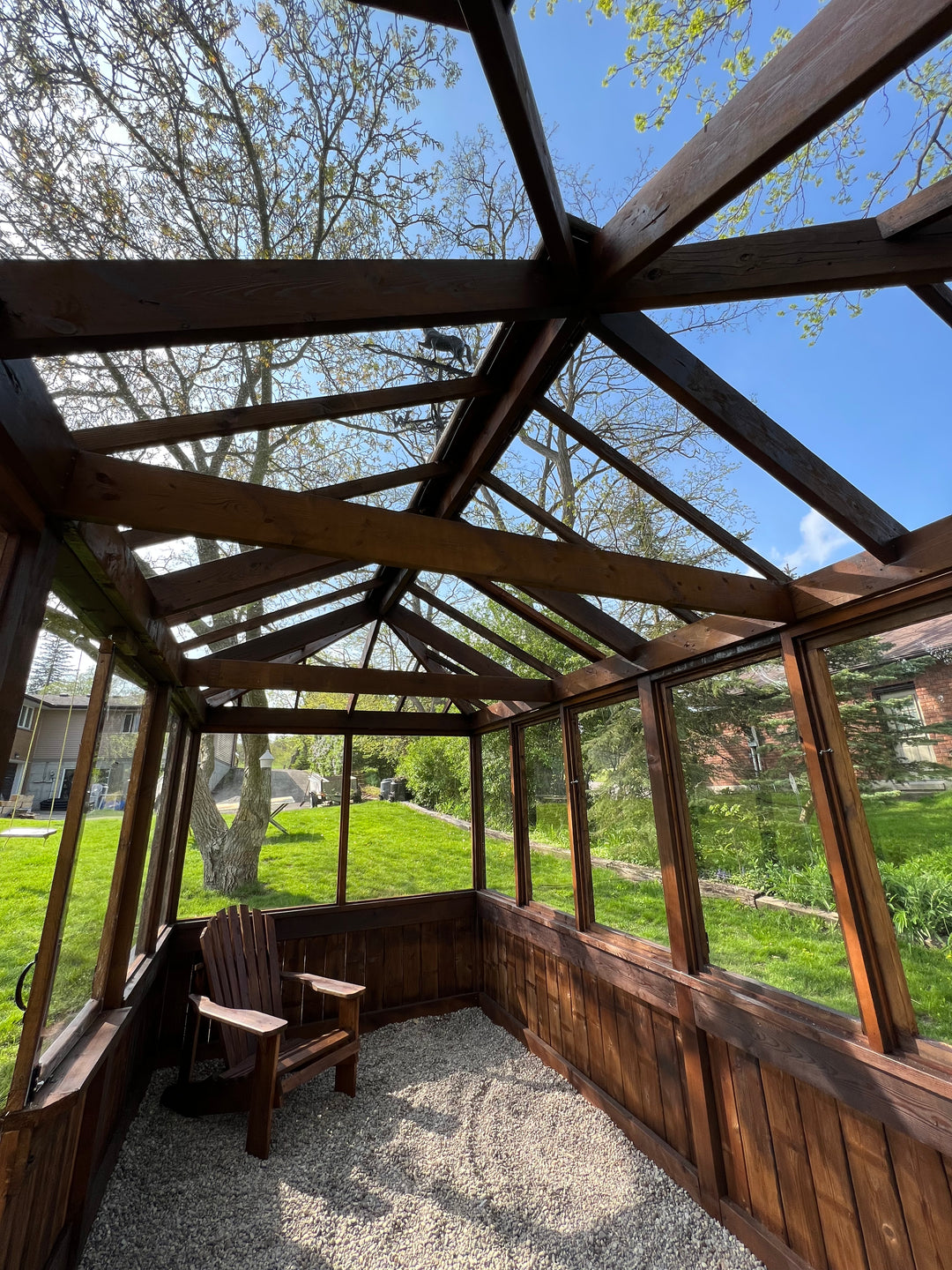 This project was so much fun and only took a week to complete! We used our recycled cedar deck boards, pressure treated lumber we got second hand, and acrylic plexiglass sheets from Kijiji to create the perfect greenhouse! This space has been so handy for repotting our plants and starting seeds. It's also a super relaxing place to hang out and enjoy a rainy night.